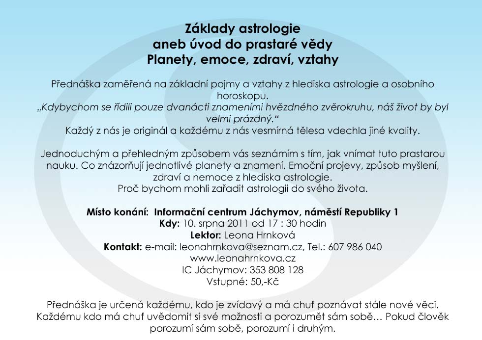 Všem příznivcům, ale i nováčkům... mých astrologických přednášek.