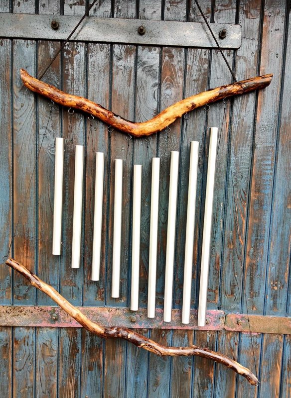 Zvukové vlny jsou poskládány z devíti hliníkových tyčí,(mohou být i mosazné) a každá je ryzím originálem a nikdy není stejná…